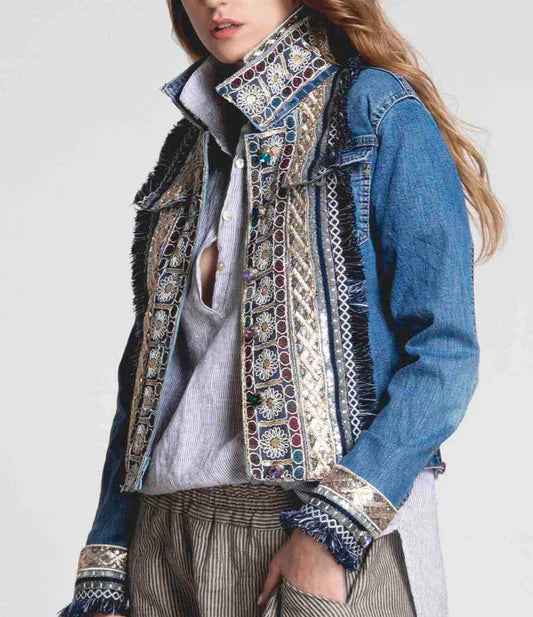 Denim Vest with Decorative Zips & Statement Trims Turn heads in this...