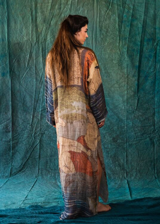 Caftan dress adorned with a print by Greek painters