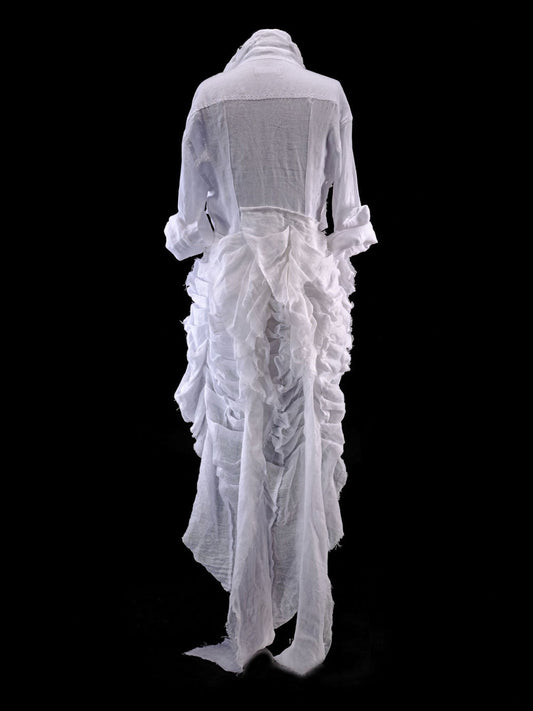 Bordeaux cotton shirt with golden embroideries and ruffles